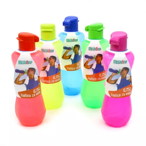 A 750 ml-es műanyag kulacs praktikus, továbbá strapabíró kialakítású, így edzéshez, kiránduláshoz, iskolába és stb egyaránt használható. Modern, ergonomikus formája kényelmes fogást biztosít. Egy kézzel nyitható gyors záró kupakja ivás közben nem csapódik vissza. Használata higiénikus, mivel nyitáskor a kéz nem érinti az ivófelületet.